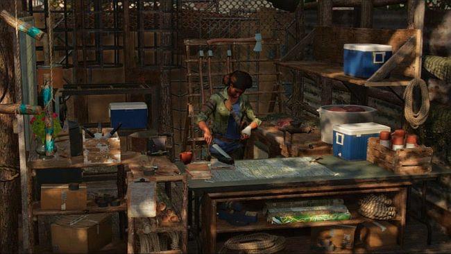 Récupérez leurs peaux et échangez-la contre de l’équipement unique dans un pavillon de chasse d’un camp de guérilleros.