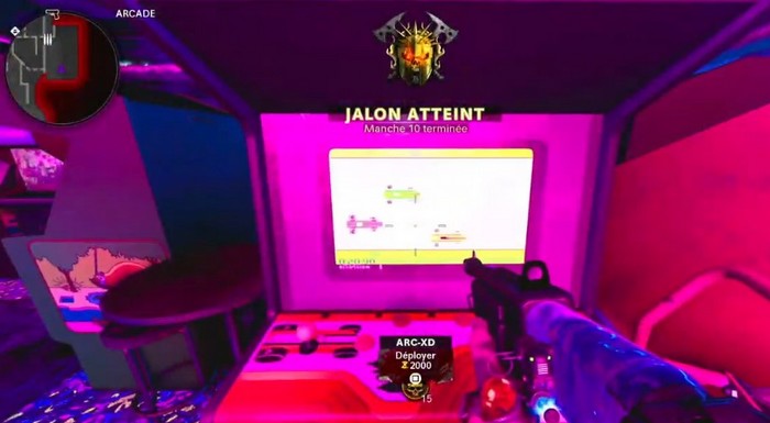 Dirigez-vous vers la salle d’Arcade et devant le jeu Der Eisendrache vous devez tuer un zombie en utilisant le mods de munitions Câble HS pour activer le jeu.