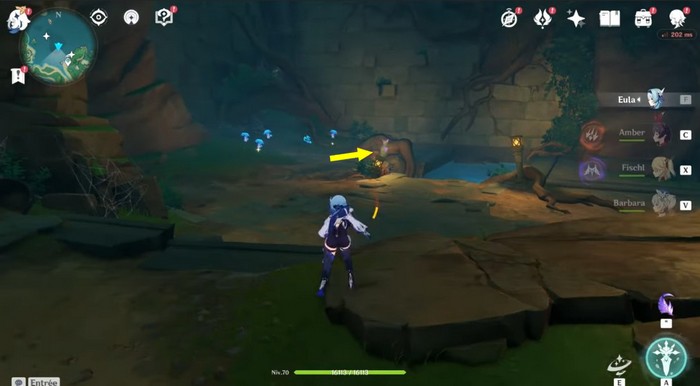 Ensuite, tournez à gauche et descendez. Ici, vous verrez un mur avec une photo d’oiseau dessus. Utilisez le gadget ‘plume étrange’ devant le mur. Cela fera disparaître le mur, révélant une pièce secrète.