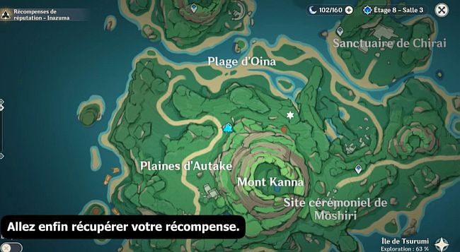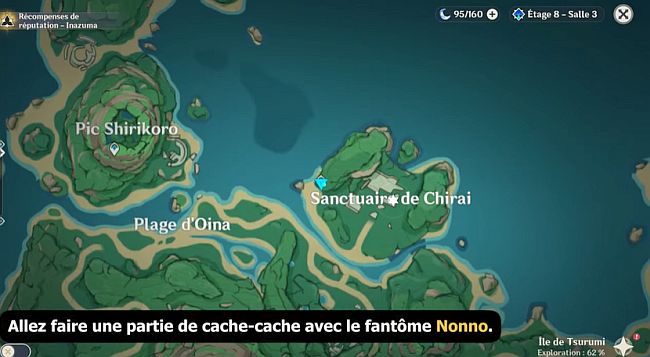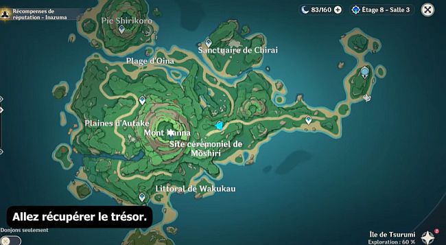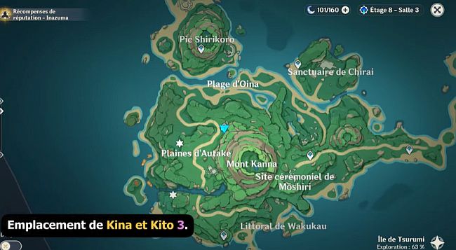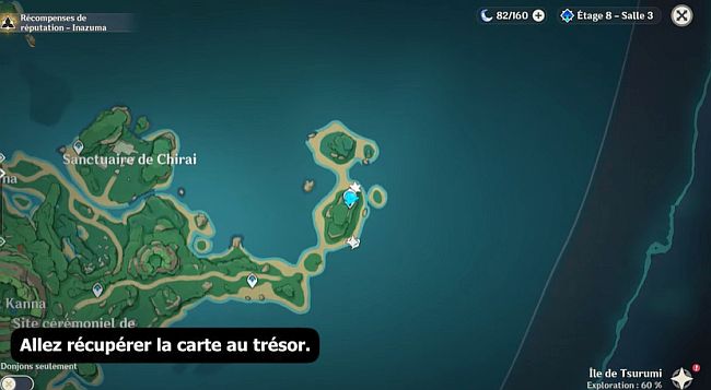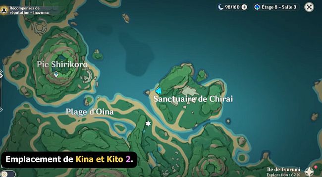 Rendez-vous à l’emplacement indiqué sur la carte ci-dessous pour parler avec Shitoki et récupérer la carte au trésor.