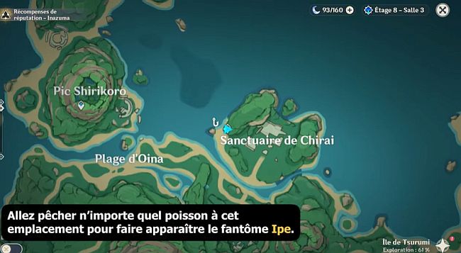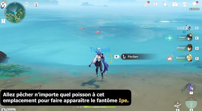 Allez pêcher n’importe quel poisson à cet emplacement pour faire apparaître le fantôme Ipe.