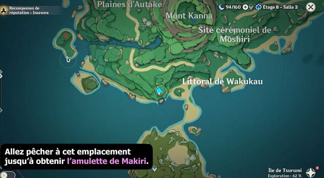 Allez pêcher à cet emplacement jusqu’à obtenir l’amulette de Makiri.