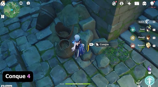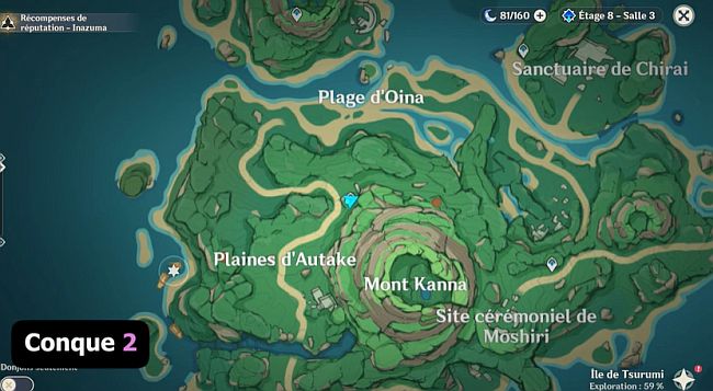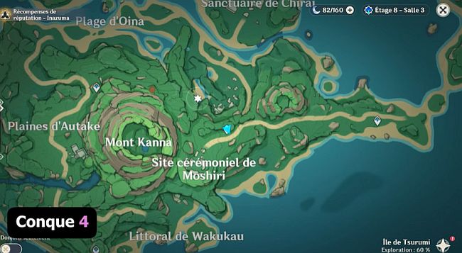 Emplacements des 4 conques pour récupérer la carte au trésor