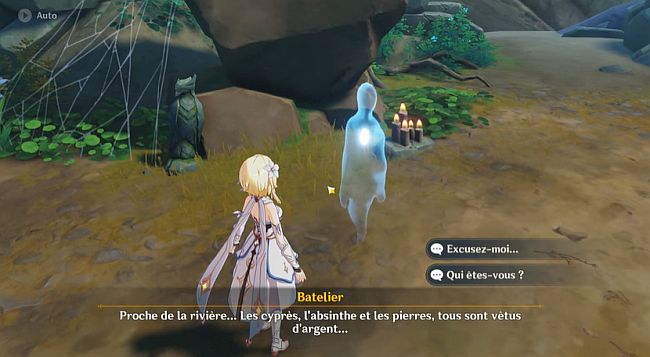 Rendez-vous à l’emplacement du fantôme Batelier pour parler avec lui : il vous parlera d’un bateau, mais actuellement sans suite.
