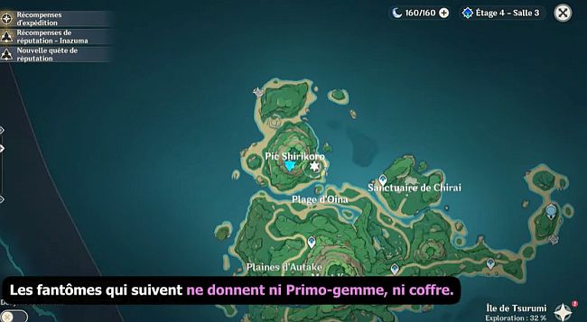 Il y a actuellement 9 fantômes sur l’île de Tsurumi, mais seuls 6 fantômes donnent des récompenses.