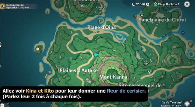 Allez voir Kina et Kito pour leur donner une fleur de cerisier (Parlez leur 2 fois à chaque fois)