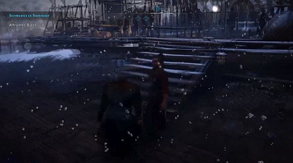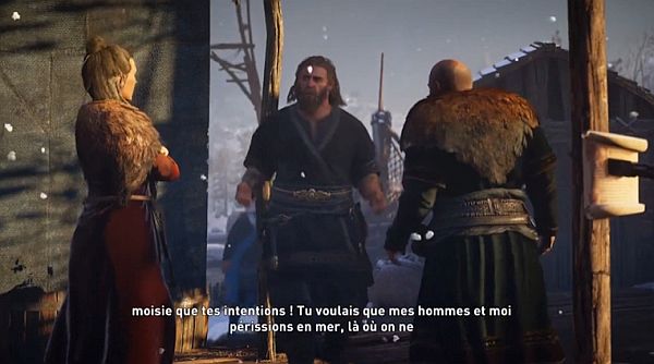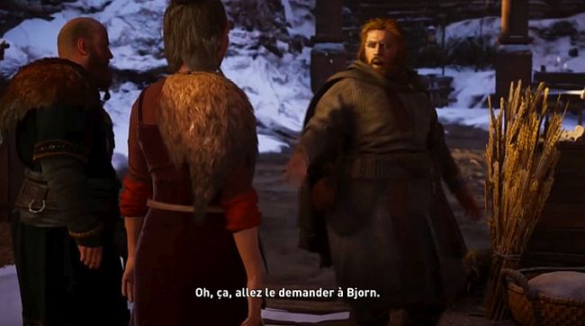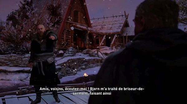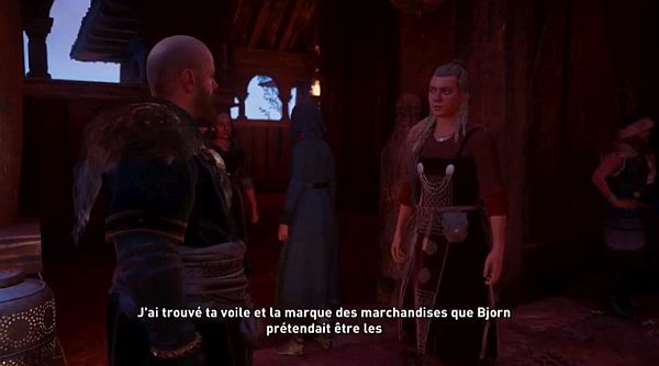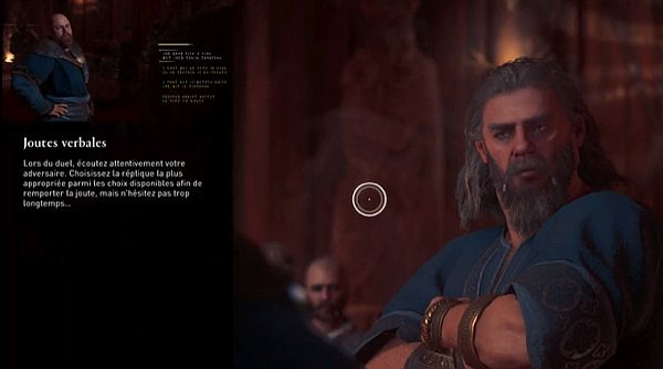 Une fois sur place, parlez à Gunnhilda, puis approchez-vous de l’assemblée pour commencer une autre scène, menant à un duel (joutes verbales) avec Bjorn.