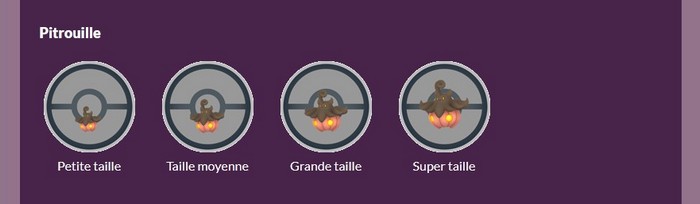 Selon la taille du Pitrouille, son spawn est différent. Voici où vous pouvez trouver chaque taille de Pitrouille.