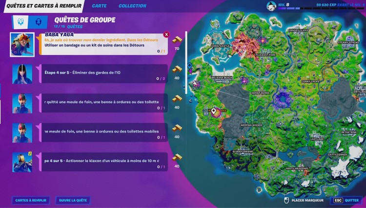 Epic Games a officiellement révélé le skin secret du passe de combat de la saison 8 de Fortnite. L’une des quêtes pour débloquer le skin la Reine Cube demande de « survivre aux cercles de tempête en portant une arme des détours ». Voici comment le faire.
