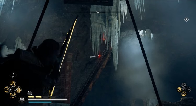 Après être entré dans le tombeau, vous devez vous méfier du glace car vous pouvez chuter facilement. Si vous savez chronométrer, glisser sur le côté de la glace puis sautez sur la première plateforme. Vous pouvez vous frayer un chemin jusqu’au fond en sautant des différentes plates-formes avant d’atteindre les rochers puis d’arriver au fond.