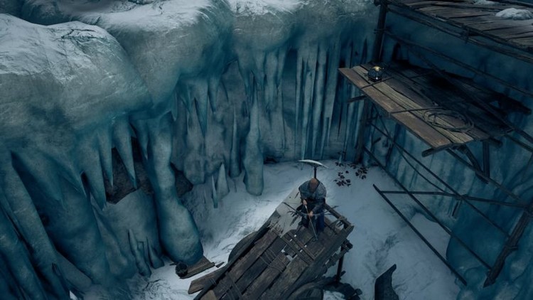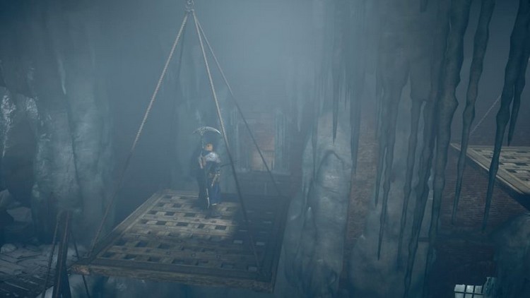 La dernière plaque de pression se trouve près de l’endroit où vous avez commencé, au début de la chambre. Il devrait y avoir une corde reliée à la partie inférieure de la chambre. Atteignez le fond, et suivez le chemin à travers la chambre de glace où vous devrez tirer un levier vers un dispositif que vous devrez transporter jusqu’au sommet. Lorsque vous atteignez la pente ascendante, lancez l’objet dans la zone suivante, et continuez vers le chemin de glace.