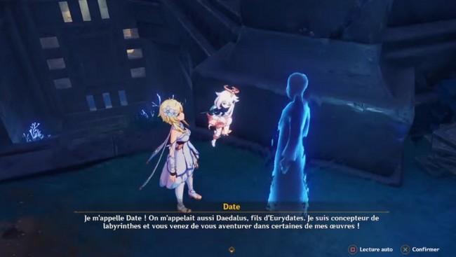 Parlez ensuite au fantôme nommé Date, qui se trouve près du coffre luxueux, pour commencer la quête du monde « Défi de Date ». Date vous donnera également la Clé de Date.