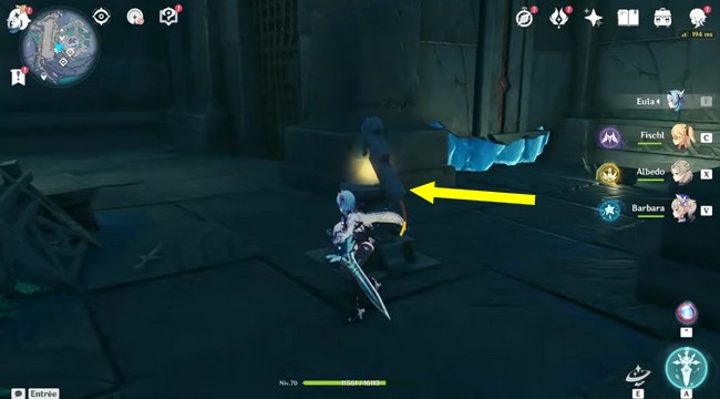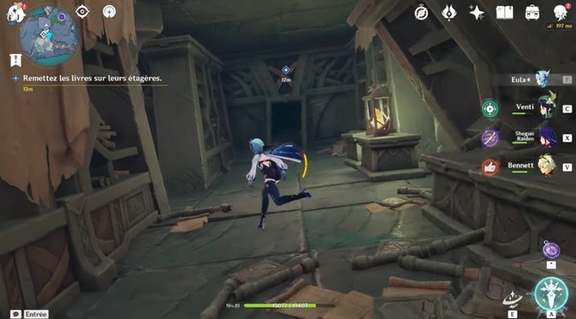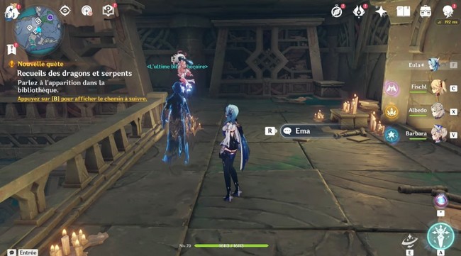 Pour commencer la quête, parlez à Ema au premier étage de la bibliothèque dans les Gorges, comme le montre l’image ci-dessous.