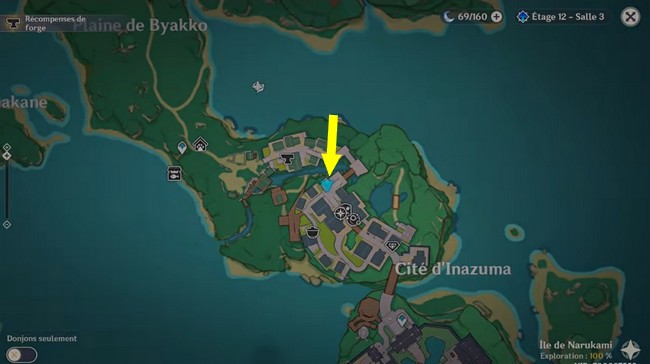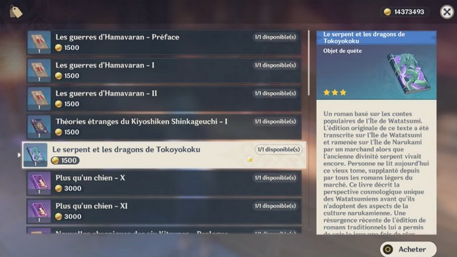 Vous pouvez acheter ce livre perdu à Kuroda. Vous le trouverez au nord du point de téléportation du Cité d’Inazuma, comme indiqué sur l’image ci-dessous.