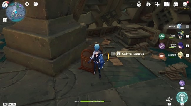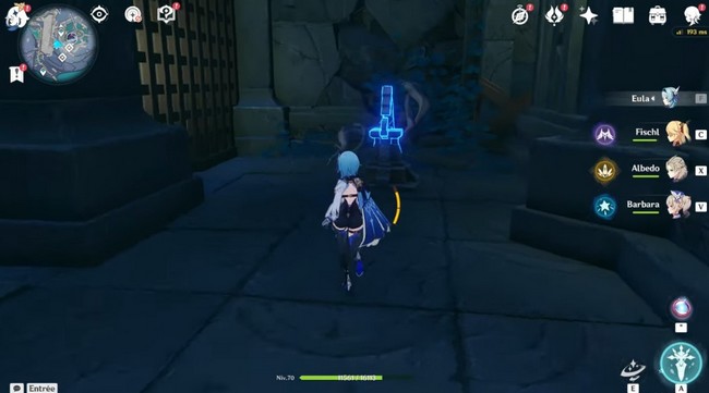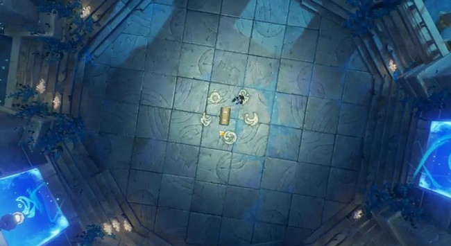 Passez ensuite par le trou sur le muret frappez le deuxième mécanisme triangulaire de la pièce. Cela va déplacer le mur et ouvrir le chemin vers le coffre caché.