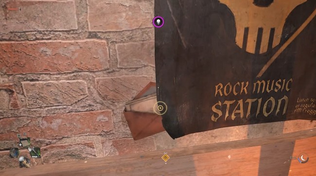 Suivez le « chemin » le long du côté de l’église jusqu’à ce que vous sautiez sur les deux arcs-boutants. Une fois que vous les avez franchis, vous pouvez entrer dans le clocher lui-même en vous accroupissant par l’une des fenêtres condamnées. Continuez à grimper dans le clocher jusqu’à ce que vous arriviez à une pièce pleine de boîtes et de récipients avec des couvercles bleus. Allez du côté gauche de la pièce et fouillez la lettre derrière l’image « Rock Music Station ». C’est là que se trouve le code.