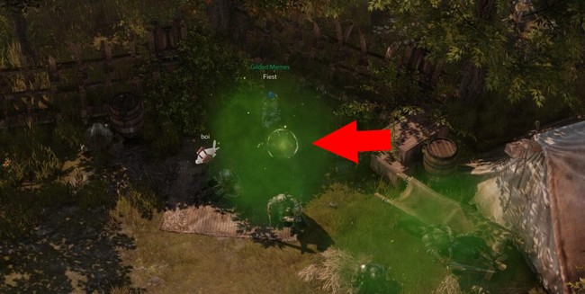 Dans le coin en haut à droite de la zone avec les PNJ malades, au milieu de la fumée verte.