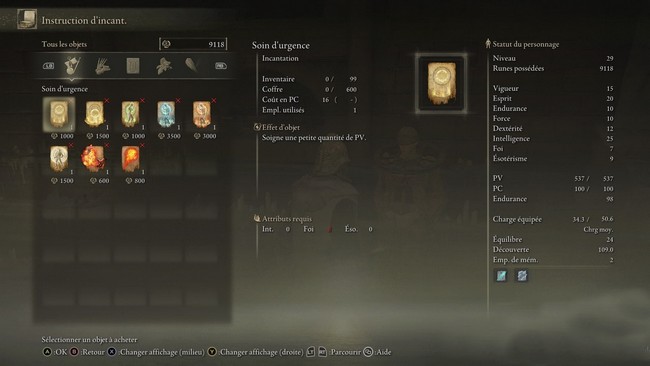 Vous pouvez acheter des sorts d’incantation auprès du marchand Corhyn, comme le montrent les images ci-dessous.