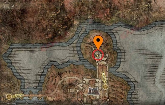 La grotte secrétée se trouve à Caelid, près d’un cimetière avec une grande pierre tombale. La falaise juste derrière est un mur illusoire, alors frappez-le et allez à l’intérieur de l’Antre de Sellia. Rendez-vous sur le point indiqué sur la carte ci-dessous.