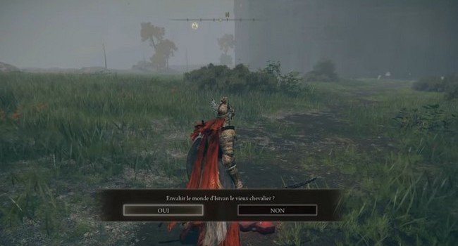 Pour affronter Istvan le Vieux Chevalier, examinez le signe rouge sur le sol et choisissez « Oui » pour « Envahir le monde d’Istvan le Vieux Chevalier ». Après un court écran de chargement dans Elden Ring, vous serez transportés dans le royaume du chevalier pour l’affronter au combat.