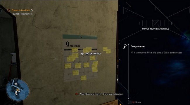 - Cadre photo près des ordinateurs à droite (pour déclencher une cinématique).