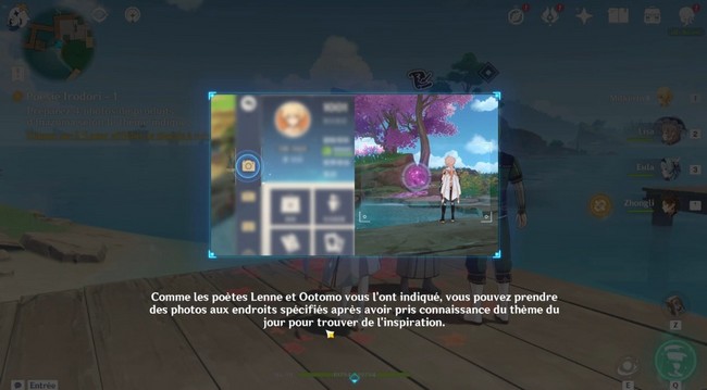 Parlez à Ootomo dans le port de Ritou. Il vous demandera de prendre des photos des produits d’Inazuman pour trouver de l’inspiration.