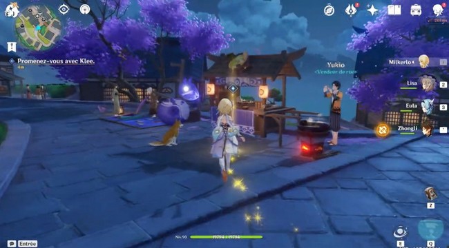 Rendez-vous à la cité d’Inazuma avec Klee et allez au stand de nourriture indiqué par le marqueur de quête.