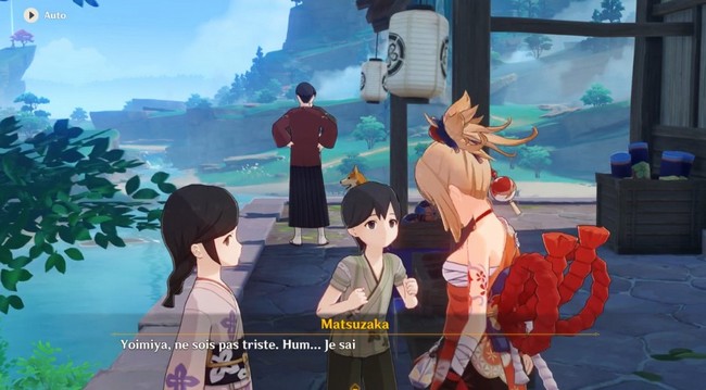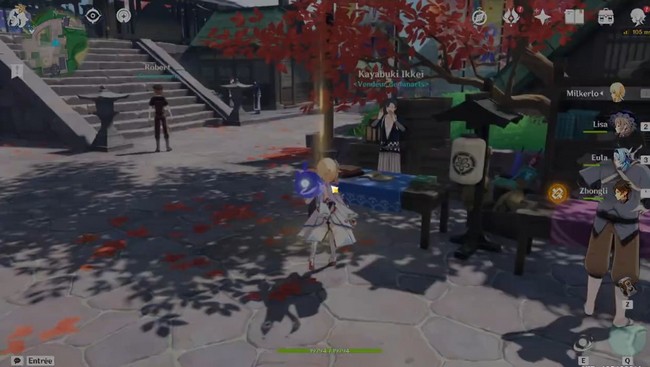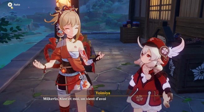Allez à Ritou pour emmener Klee et Yoimiya au festival d’Irodori. Marchez brièvement avec Klee et Yoimiya jusqu’à l’échoppe de Kayabuki Ikkei.
