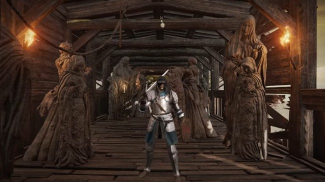 À ce stade, vous pouvez emprunter l’ascenseur pour entrer dans le château. Tracez votre chemin dans le château, et finalement, vous rencontrerez un couloir avec de nombreuses statues.