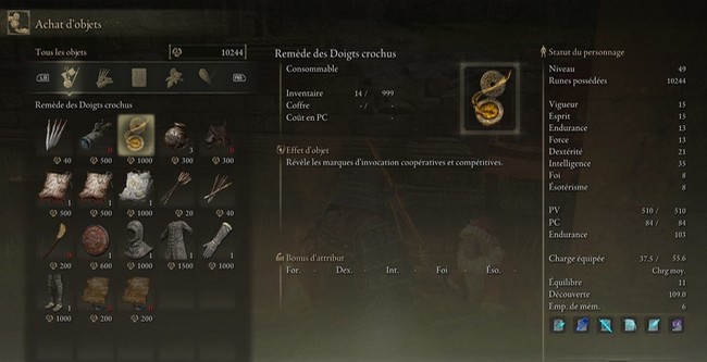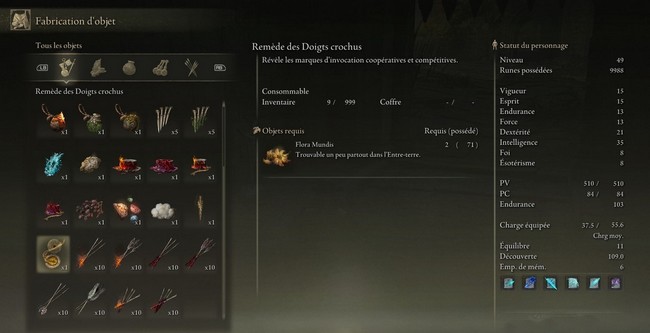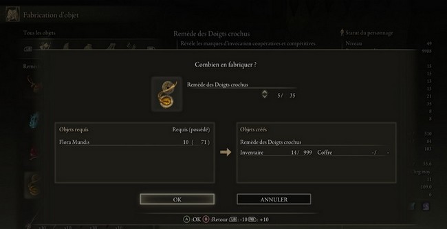 Vous pouvez alors fabriquer Remède des Doigts crochus, chacun coûtant deux Floras Mundis. Sinon, vous pouvez l’acheter chez le marchand Kalé pour 1000 runes, ce qui est une énorme arnaque pour les joueurs débutants.