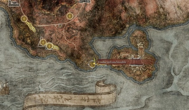 Maintenant que l’ascenseur a été activé, allez dans la partie sud-est de Caelid. Ici, vous trouverez le site de grâce du Viaduc Infranchissable.