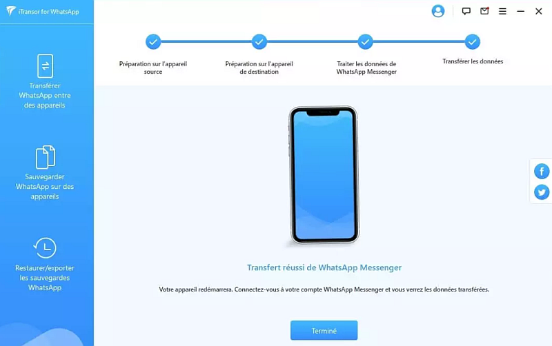 Ce processus peut prendre jusqu’à quelques minutes, en fonction de la taille de la copie transférée. Une fois cette opération effectuée, toutes vos conversations seront à nouveau disponibles, comme sur votre ancien téléphone.