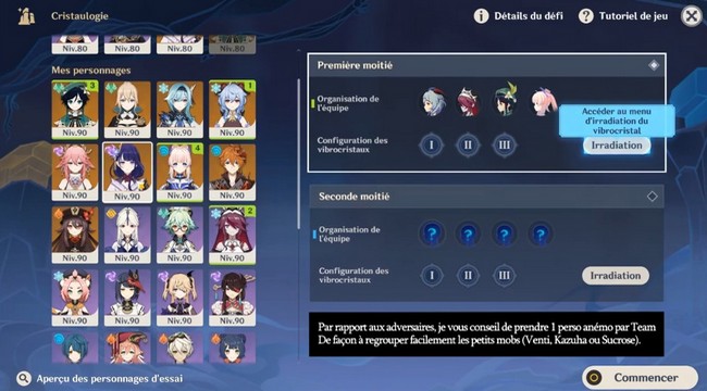 Utilisez un personnage Hydro et Cryo par équipe (le duo Yoimiya + Ayato est parfait pour le défi)