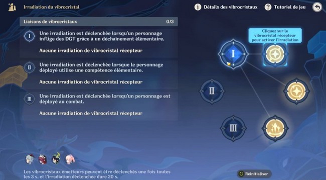 La principale « mécanique » de cet événement consiste à « relier » les effets, qui deviennent plus forts en fonction du nombre de liens que vous établissez. Vous pouvez avoir un de chaque, ou les empiler tous sur un seul nœud. Leurs effets et leur force seront donc différents en fonction de la configuration. Vous devez réunir deux parties avant de pouvoir commencer. Vous devez choisir des personnage qui vous permettront d’attirer les ennemis au même endroit. Les personnages xiangling, Xingqiu, Venti, Kazuha et Sucrose sont les meilleurs pour ce défi.