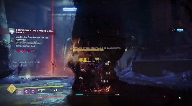 - La dernière étape vous met face à un boss Cauchemar plus coriace. À environ la moitié de sa santé, il obtiendra un bouclier d’immunité. Détruisez les quatre éclats résonnants qui apparaissent, puis éliminez-le.