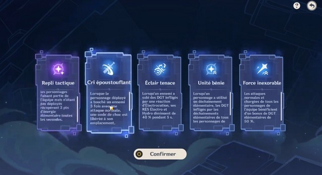 | Réussissez à terminer la Cour escarpée en « Acrimonie extrême » | 30,000 Mora 3 Leçons de Héros 3 Minerai de renforcement mystique |