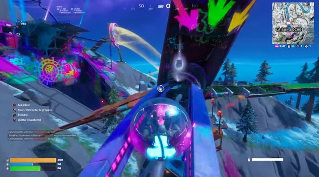 Les jetons de la Bamboche sont de loin les plus faciles à obtenir. Tout d’abord, nous vous recommandons d’atterrir à cet endroit directement depuis le bus de combat – la clé ici est de se diriger vers la tête et de sauter dans une bulle mobile dès que possible.