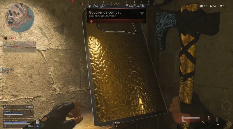 L’étagère devrait maintenant s’ouvrir et révéler une salle secrète. Dirigez-vous à l’intérieur pour trouver des armes en or, dont un bouclier de combat et une hache de lancer : fendeur de crânes !
