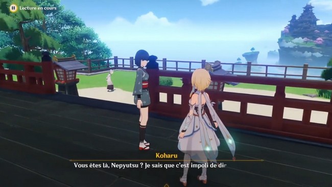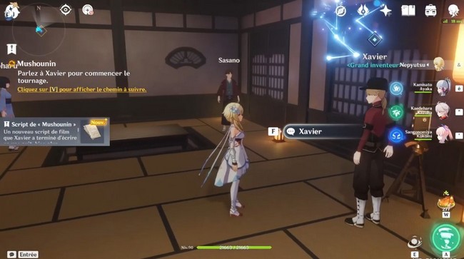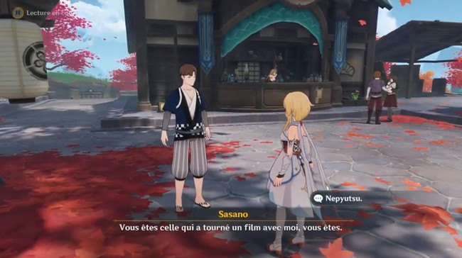 La quête Notes de film peut être commencée en parlant à Furuta, un PNJ qui apparaît au domaine Kamisato. Pour cela, téléportez-vous au point de téléportation du domaine Kamisato et dirigez-vous vers l’est.
