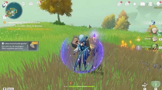 Des ennemis vous attendent lorsque vous atteignez le sommet. Battez tous les ennemis pour trouver un coffre sur le champ d’herbe. Le coffre contiendra les deux objets nécessaires pour le bonsaï.