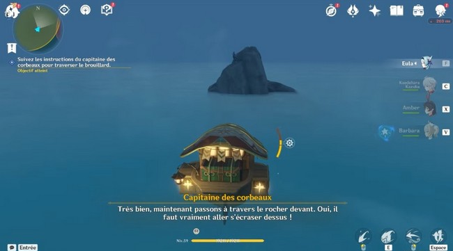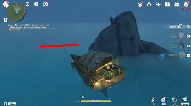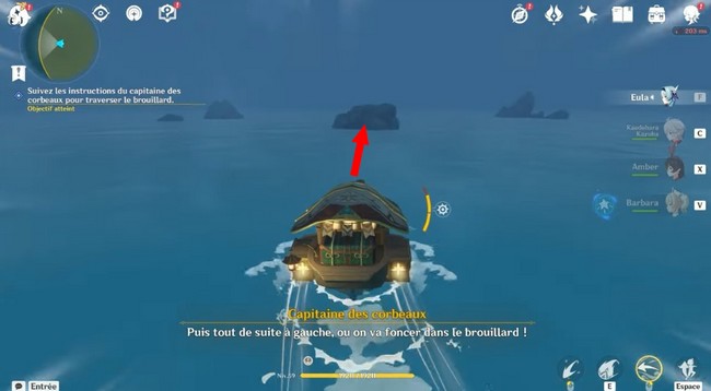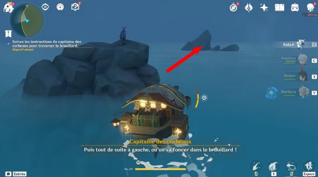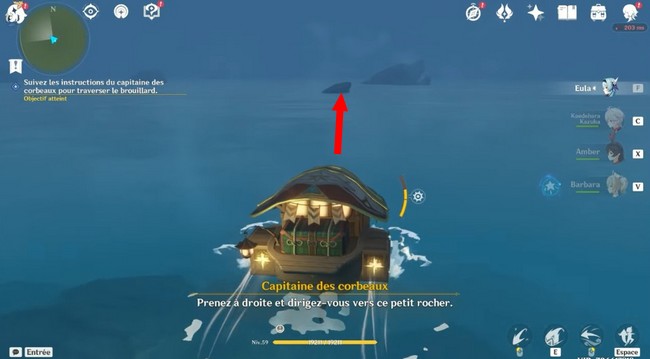 Suivez les instructions du capitaine des corbeaux pour traverser le brouillard