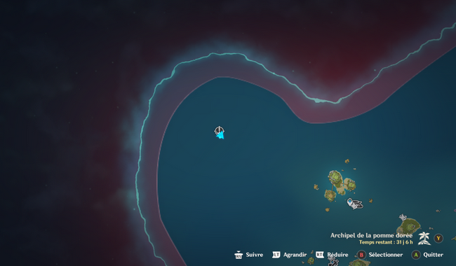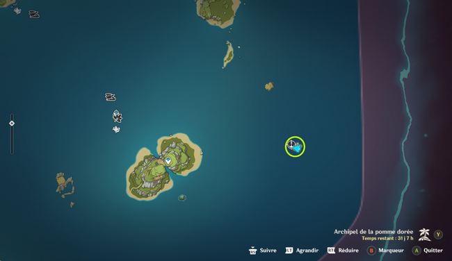 Utilisez la barge pour vous rendre à l’endroit marqué à l’ouest des îles funestes.
