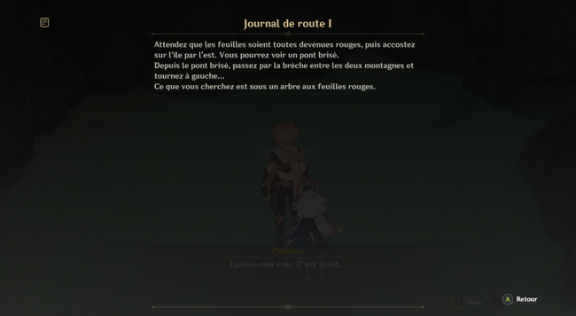 Une fois que vous aurez obtenu les quatre parties des indices, le jeu vous fournira la carte au trésor finale après la scène de coupe.