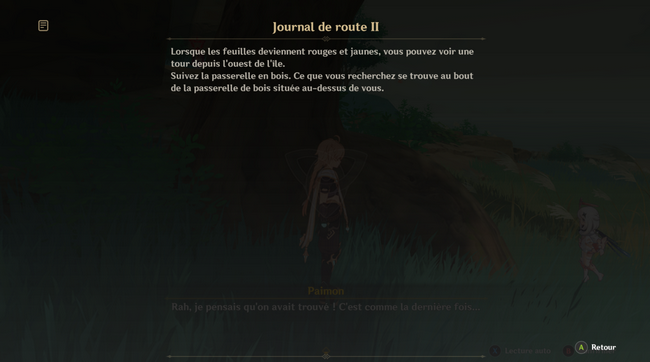 Maintenant que les îles sont modifiées, allez au sommet des îles du flan et descendez en planant sur le côté sud-est de la carte. Récupérez « Journal de bord II« sous un érable.