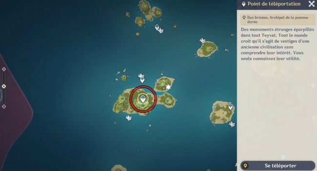 Si les îles funestes est configurée avec la nouvelle carte après l’événement de Mona, il y aura un message disant : »Cherchez des indices sur l’autre groupe Fatui dans les îles funestes de forme adéquate. » Vous devez trouver le bassin dans les îles funestes et passer à la carte originale !