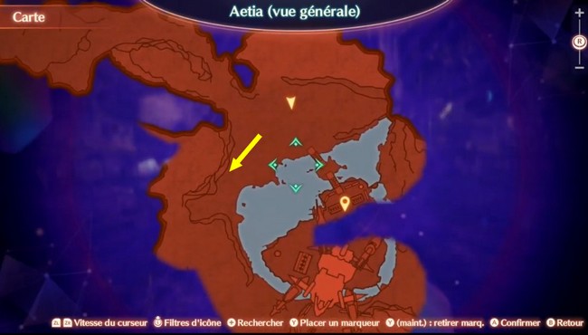 Tout d’abord on va commencer par le soja laiteux. Vous pouvez trouver le soja laiteux dans la région d’Aetia. Mais où exactement ? Cette zone est une très grande région, donc pour la trouver dirigez-vous dans les plaines d’Yzana. Voici l’emplacement exact sur la carte.