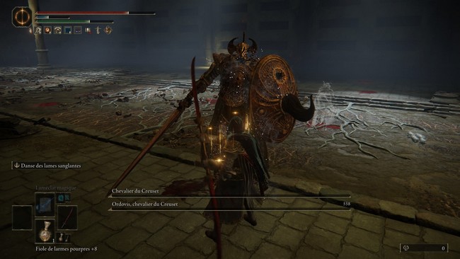 Il s’agit d’un double combat de boss, et les deux ennemis sont assez agressifs. Si l’arène du boss peut sembler grande au début, vous souhaiterez rapidement avoir plus d’espace pour vous déplacer. Ce combat est une question de patience et de conscience spatiale. Il est souvent préférable de tourner en rond pour avoir plus d’espace pour reculer plutôt que de recevoir un coup supplémentaire parce que chacune de leurs attaques vous étourdit et vous enlève une grande partie de votre santé. De plus, soyez prêt à mourir plusieurs fois. Ce combat de boss représente un véritable saut de difficulté par rapport à la grande majorité des donjons mineurs d’Elden Ring.
