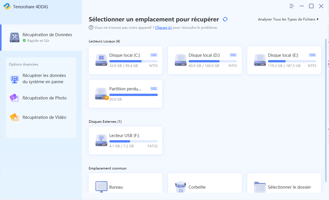 4DDiG Data Recovery est le meilleur logiciel pour récupérer les données du disque dur ps4. Que vous ayez formaté votre disque dur ou que vous ayez perdu une partition, cet outil peut rapidement récupérer vos fichiers sans les endommager.