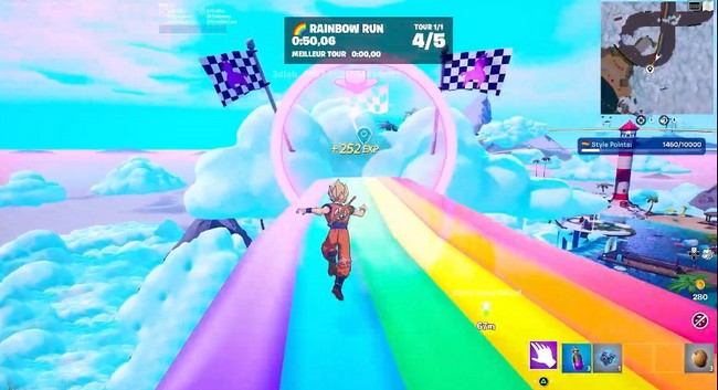 La mise à jour du 30 août a également ajouté l’événement Jouez à votre façon, avec de nouvelles quêtes, récompenses et cartes créatives. Pour accomplir la quête « Accomplir des exploits dans la Croisée des Fiertés« , vous devez terminer 10 exploits. L’une de ces 10 exploits demande de « Finir la course arc-en-ciel », ou en anglais, « Finish Rainbow Run ».