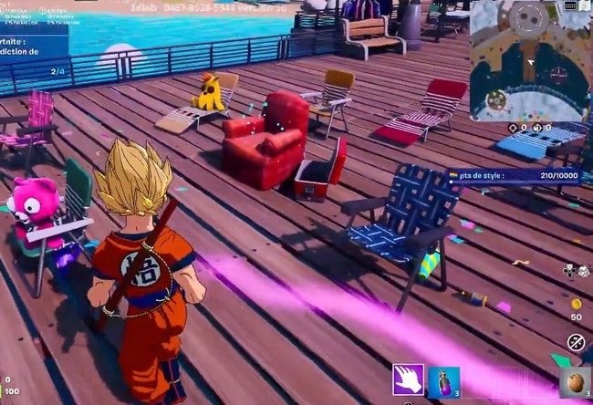 Votre prochain objectif sera de terminer la quête de Dreamer qui consiste à « Trouver ces accessoires de Fortnite : Fauteuil, dinosaure, cube, interdiction de danser. »